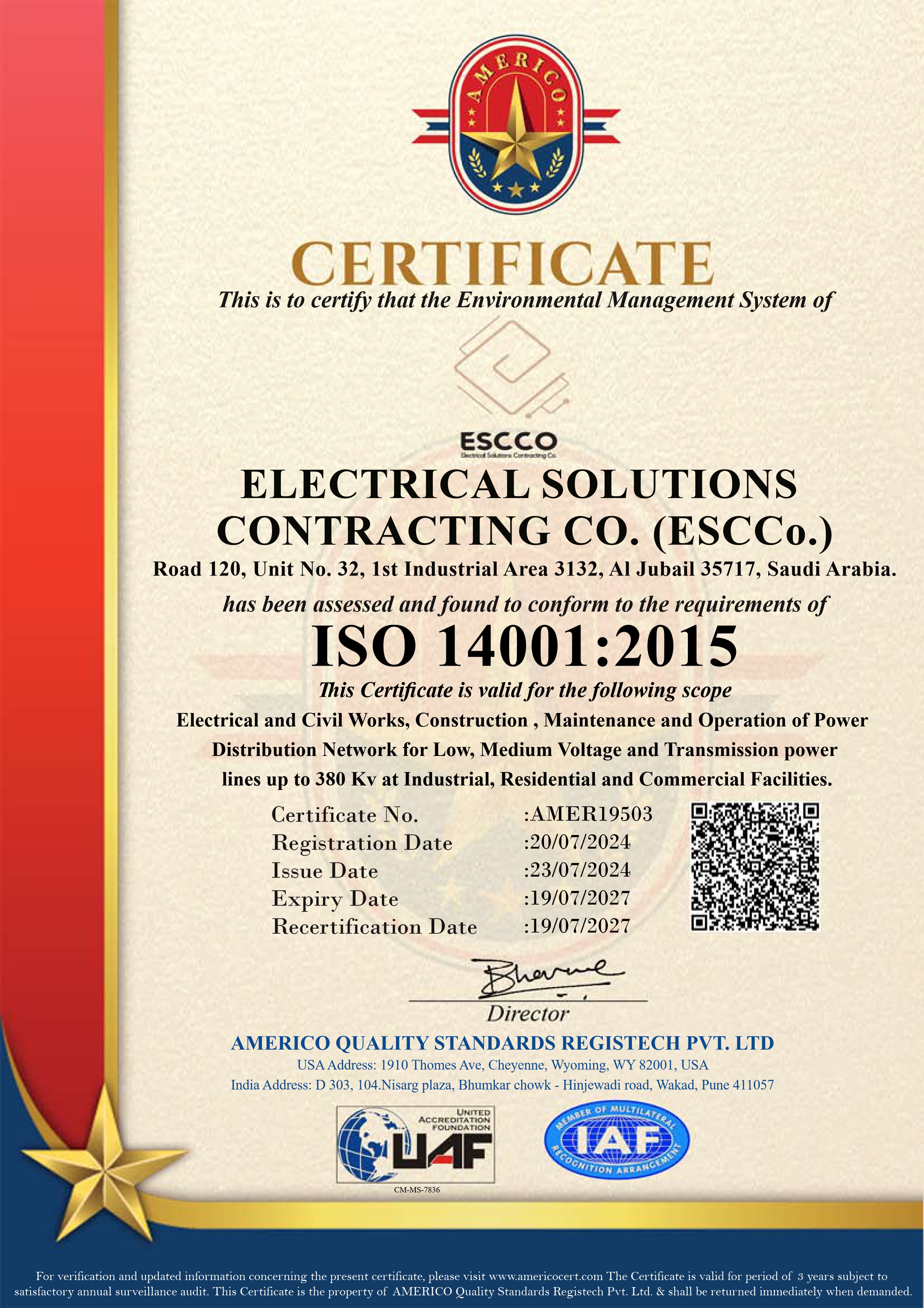 Electrical Solution Contracting Company (ESCCO) is a leading provider of cutting-edge electrical solutions, specializing in residential, commercial, and industrial electrical services. 25 years of expertise working with Saudi Electric Company (SEC), our team of certified professionals delivers high-quality, energy-efficient, and safe electrical systems tailored to meet the needs of modern infrastructure.